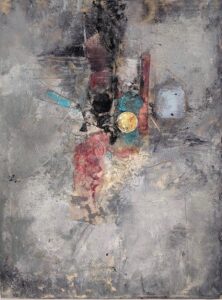 Encaustic collage on board, 9″ x 12″